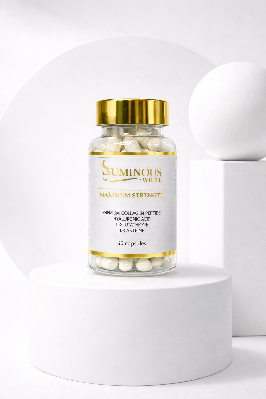 Luminous White Maximum Strength is a powerful, all natural Glutathione formula. This skin whitening formula with premium collagen peptide and L-cysteine is a combination of validated ingredients that nourish skin from within and give a healthy glow.